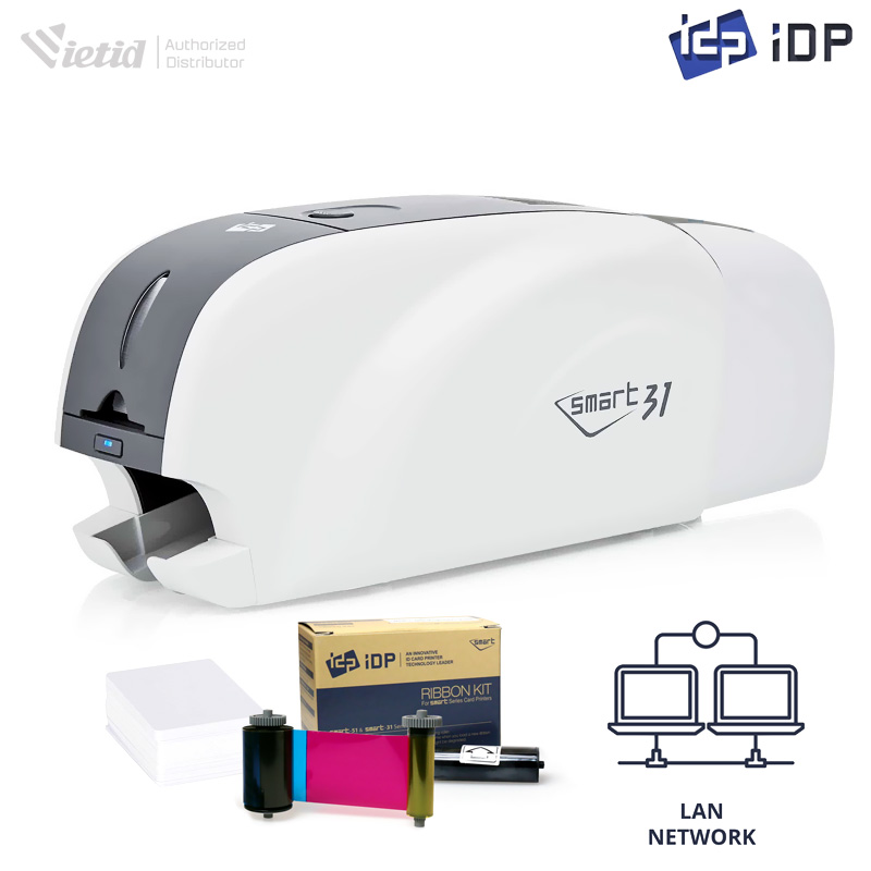 Máy in thẻ nhựa IDP SMART 31D Ethernet sử dụng thăng hoa nhuộm trực tiếp để tạo ra hình ảnh sắc nét ở độ phân giải 300, 600 và 1200 dpi. Nó cung cấp khả năng in hai mặt với thiết kế nhỏ gọn chỉ 3.4kg. Có thể tăng tốc độ lên tới 720 thẻ mỗi giờ khi sử dụng ruy băng đơn sắc, trong khi in đủ màu có thể đạt được với tốc độ 156 thẻ mỗi giờ. Máy in thẻ kích thước tiêu chuẩn CR-80 với độ dày 0.4 – 0.8mm. Khay đầu vào chứa 80 thẻ. Khay đầu ra hỗ trợ tối đa 25 thẻ.